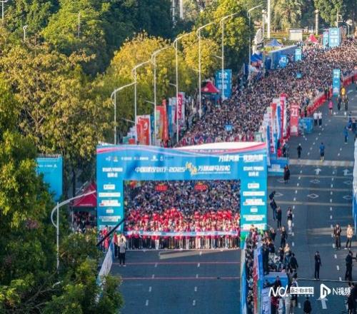 上午8时整,随着发令枪响,万名跑者如潮水般涌出起点,